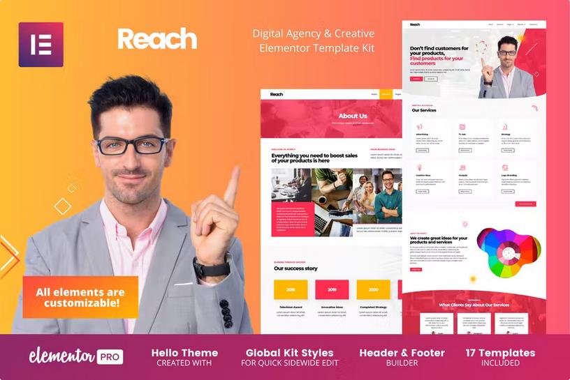 Reach – Digital Agency & Creative Elementor Template Kit is the world’s leading Elementor Kits. It comes with powerful features that enable you to build your website quickly and easily.